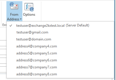 The From Address button displays a drop-down menu of the addresses available to the user.